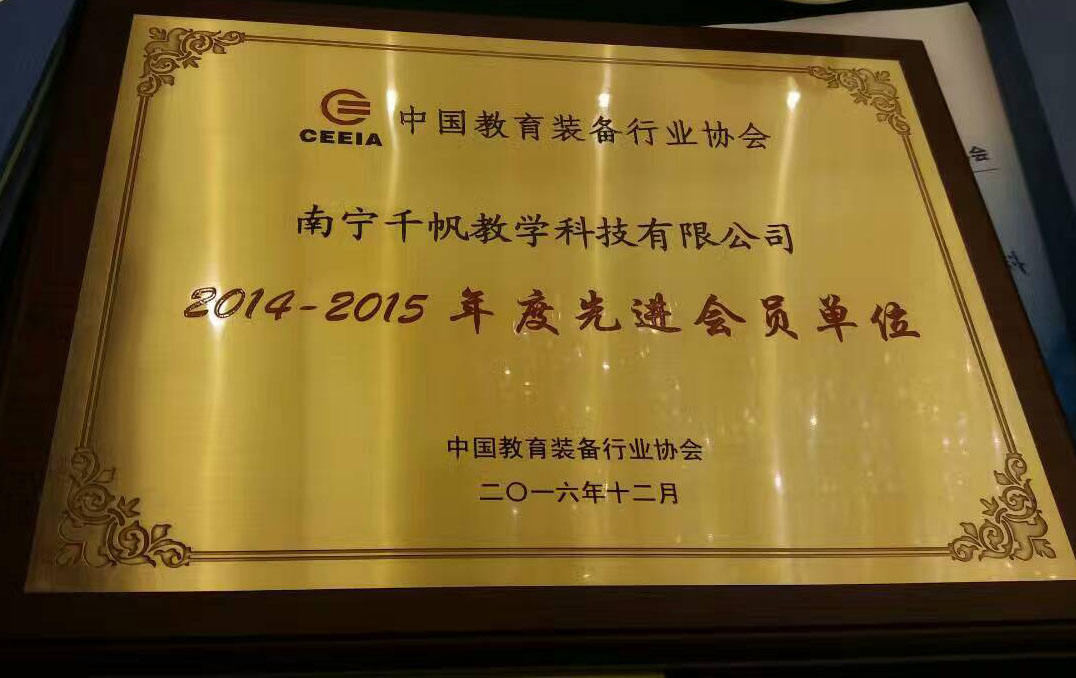 熱烈慶祝千帆公司獲得中國(guó)教育裝備行業(yè)協(xié)會(huì)2014-2015年度先進(jìn)會(huì)員單位