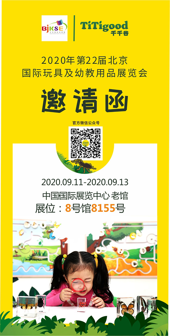 2020年9月11日至13日,千帆攜自主品牌“TiTigood千千谷”兒童自然科學(xué)標(biāo)本等系列產(chǎn)品參加第22屆北京國(guó)際幼教用品展覽會(huì)。誠(chéng)摯的邀請(qǐng)您蒞臨展位現(xiàn)場(chǎng)參觀咨詢。